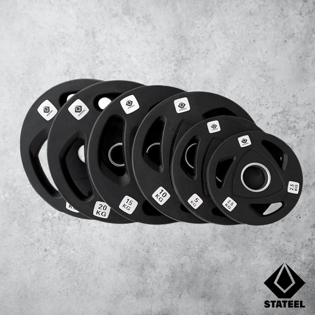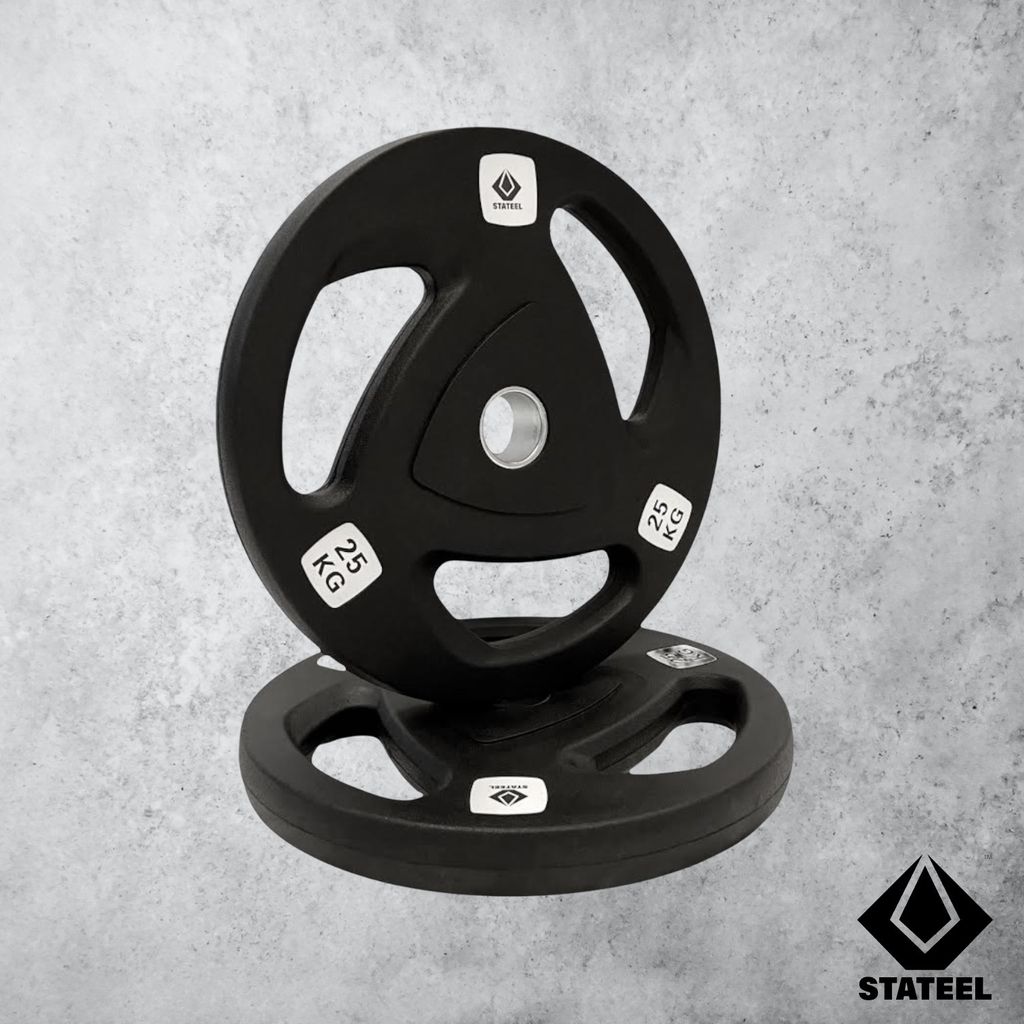 - Stateel Tri-Grip Olympic Weight Plates (Pair) - 2.5kgs to 25kgs pairs depending on chosen combo**